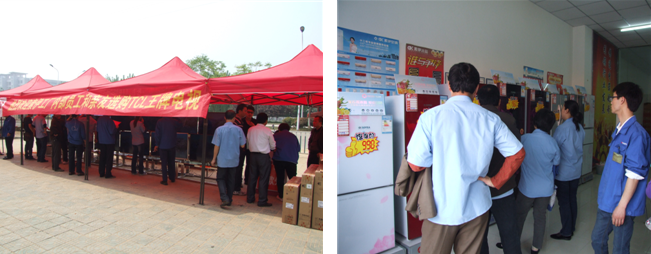 4月16日活動開展的第一天,手持“親!您們幸苦了!!”紅色福利劵的索伊員工就興致勃勃的來到索伊西大門興大公司選購冰箱、空調及TCL彩電。時光荏苒,歲月如初,回眸索伊一路走過的激情歲月,汗水和豐碑將索伊的每一天都描繪的那么飽滿和立體。索伊從單一的生產冰箱發展到目前生產自主品牌的冰箱、冰柜及空調家電制造企業;索伊從起初單一的家電生產制造發展到目前擁有家電、房地產、金融、礦業、酒店五大產業,輝煌的成就是員工們一起攜手不斷開拓創新的結晶,是無可匹敵的磅礴手筆描繪出的索伊宏偉藍圖。在本次活動現場,六安興大電器銷售公司的一位工作人員告訴筆者,去年七月為了感恩員工們對索伊的支持,六安興大銷售公司推出了“感恩回饋 千萬豪禮大回饋”活動。活動的開展,讓索伊工作的員工們實實在在的體會到了公司對員工的一種福利關愛,憑公司發放的活動福利卡購買索伊冰箱,以優惠的價格享受高端的產品。去年的活動得到了公司內員工們的一致好評,在春意盎然的四月,興大銷售公司攜手TCL集團,又一次推出索伊冰箱、空調、冰柜及TCL液晶智能彩電回饋員工。